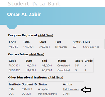 Clicking on that Fetch Course triggers a workflow, which fetches the courses from the University, via the interface integration done with the University.